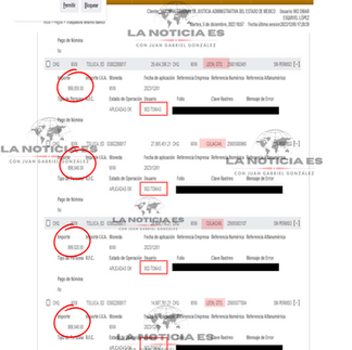 Copias de la Consulta de Traspasos del TIRJAEM, ejecutados el 1 de diciembre del 2023, indican que la mayoría de los movimientos fueron por la cantidad de 999 mil pesos, es decir, no rebasaron el millón de pesos y en el Estado de Operación del Usuario aparece la siguiente clave: 002-TOMÁS, seguido de su respectivo folio y rastreo. Los destinos de las cuentas donde se dispersó el recurso van desde Culiacán, Sinaloa; hasta Jalapa, Veracruz, Ciudad de México y primordialmente a León, Guanajuato.